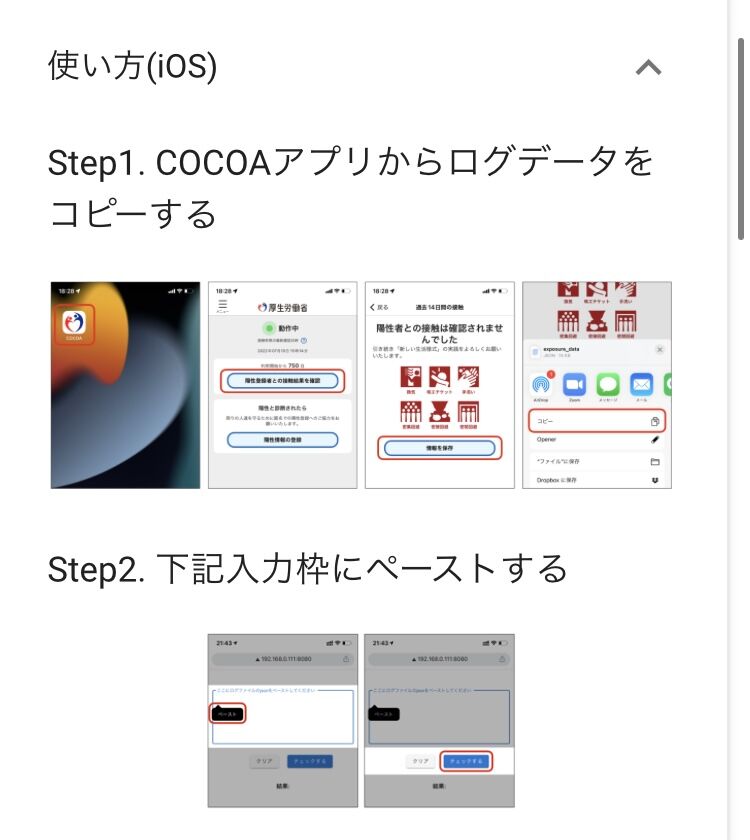 COCOAアプリからログをコピペする必要があります。やり方は上のURLにもあります。