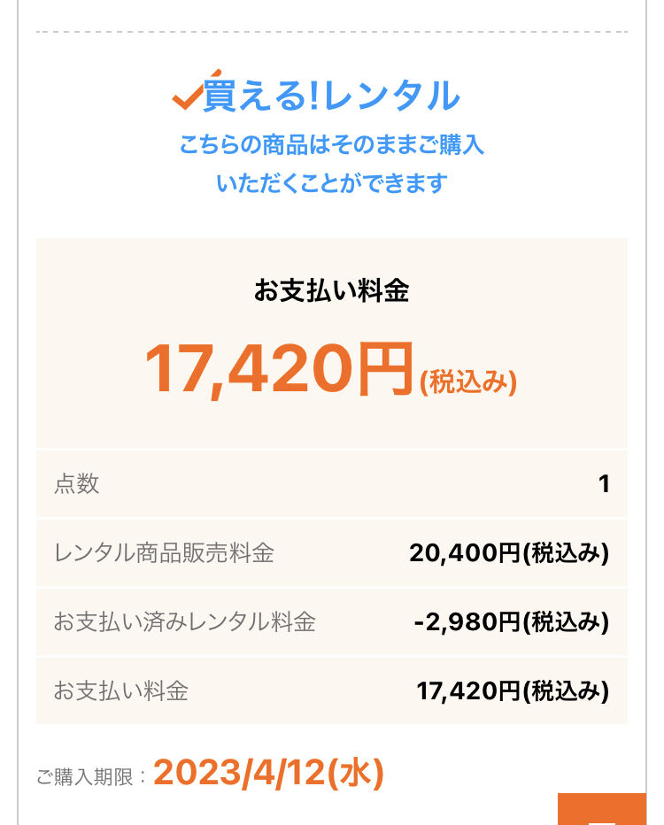 今借りているやつを買うとこの金額です。